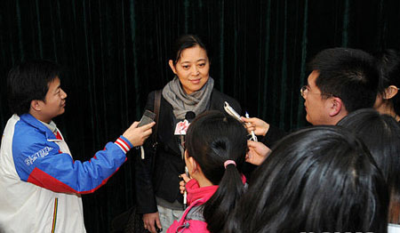 Ni Ping, a former TV host and now actress, talks to reporters during a break of a panel discussion of the Second Session of the Chinese People's Political Consultative Conference (CPPCC) in Beijing February 5, 2009. [news.cn]