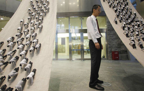 The Shenzhou VIII?spacecraft and the carrier rocket, Long March-2F, are being vertically transferred to the launch pad at the center, marking the countdown of the blasting off of the unmanned spacecraft.