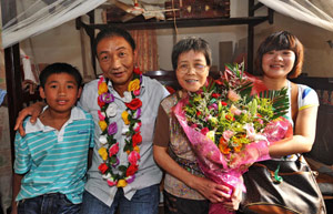 Zhan Qixiong, the Chinese trawler captain who was illegally detained by Japan, is welcomed at his hometown in southeast China's Fujian province, Sept 27, 2010.