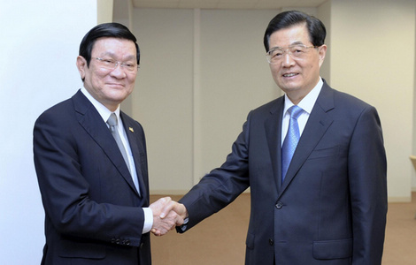 Chinese President Hu Jintao and his Vietnamese counterpart Truong Tan Sang exchanged views on bilateral ties Friday on the sidelines of the annual APEC forum.