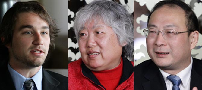 China's Vice-President Xi Jinping speaks at the home of Roger and Sarah Lande (2nd L) in Muscatine, Iowa February 15, 2012.