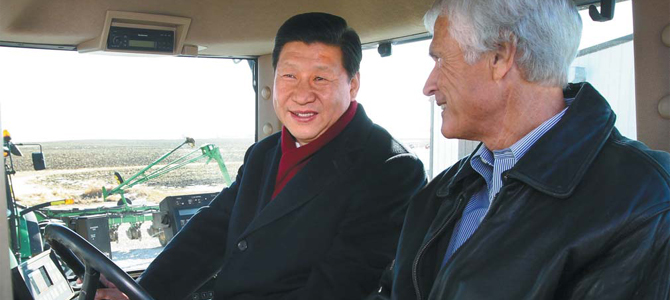 Vice-President Xi Jinping surprised his hosts on Thursday when he suddenly climbed into the cab of a tractor on an Iowa farm.