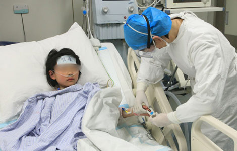 A seven-year-old girl who was confirmed to be infected with H7N9 avian flu has seen her condition improve, Beijing's municipal disease control and prevention center said Sunday.