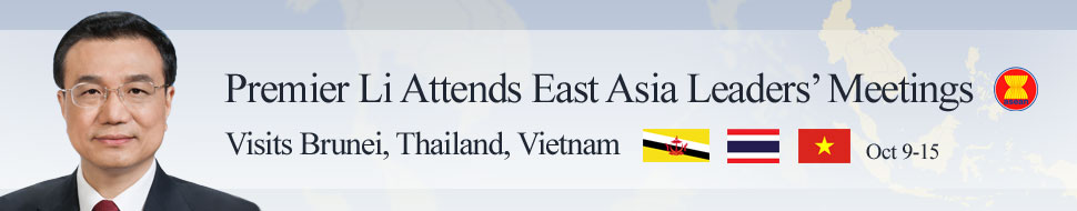 Premier Li Keqiang is to attend the East Asia leaders meetings and pay an official visit to Brunei, Thailand and Vietnam from Oct 9 to 15.