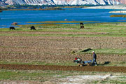 The mirror-like Qinghai Lake attracts thousands of tourists in summer.