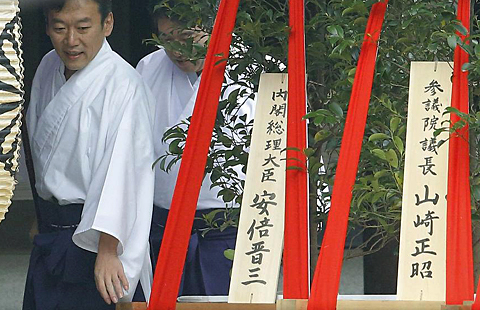 The chief of Japan's ruling Liberal Democratic Party (LDP)'s coalition ally on Tuesday admonished the visit to the controversial Yasukuni Shrine by Cabinet ministers and throngs of lawmakers on Tuesday.