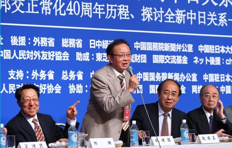 Yasushi Kudo, president of Japan's Genron NPO, a Japanese non-profit group, reads the Tokyo Consensus, a joint statement issued at the end of the 10th Beijing-Tokyo Forum, in Tokyo, Sept 29, 2014.