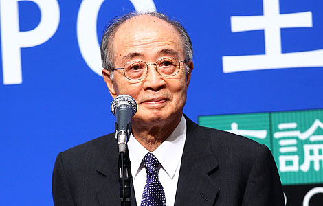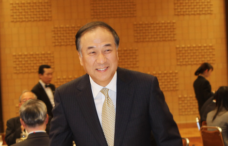 Zhu Ling, editor-in-chief of China Daily, greets guests at a welcome dinner for the eighth Beijing-Tokyo Forum, sponsored by China Daily and Genron NPO, a Japanese non-profit organization on July 1, 2012.