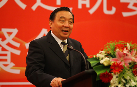 Zeng Peiyan, China's former Vice-Premier talks with Yasuo Fukuda, former Japanese Prime Minister, who is attending the 8th Beijing-Tokyo Forum which kicked off in Tokyo on Monday.