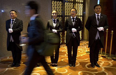 Participants get stuck in tossing pizza dough as they officially break the world record for the most number of people tossing pizza dough at once in Shanghai on October 28, 2015. 511 participants completed the challenge and broke the previous Guinness World Record title of 338 people achieved by Papa John's in London in June this year.[Photo/Ecns.cn]