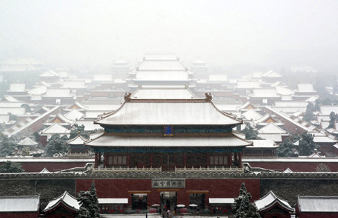 Tourists visit the Tiantan Park in Beijing, capital of China, Nov 22, 2015. Heavy snowfall hit a vast area of north China on Sunday, disrupting traffic in Beijing, Tianjin and Inner Mongolia autonomous region.[Photo/Xinhua]