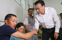 Premier Li Keqiang spoke with an injured migrant worker at a temporary shelter in Tianjin on the afternoon of Aug 16, and asked questions such as “Where are you from?”, “How exactly were you hurt?” and “Have you got any news about your friends?”