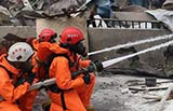 Seventy soldiers, specialist in chemical warfare, in heavy uniforms entered the core area of the blasts site on Saturday morning to search for survivors.