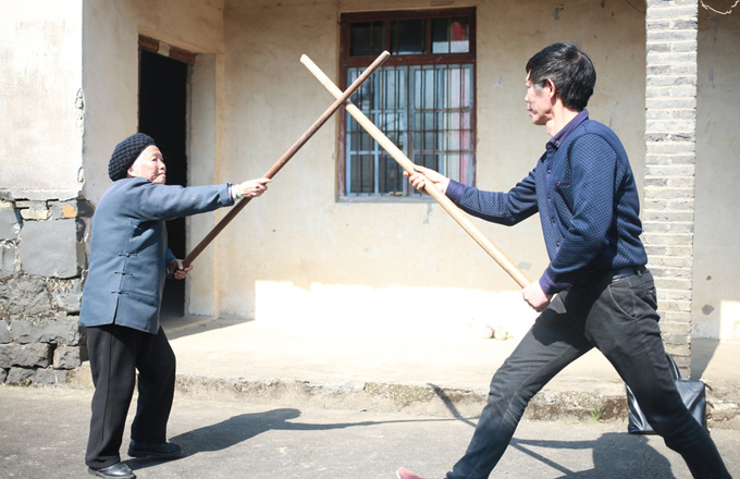Zhang Hexian, 94 years old, lives in Ninghai county, East China's Zhejiang province, and started practicing kung fu when she was four years old. She is best at boxing and clubs and has taught kung fu to hundreds of students.