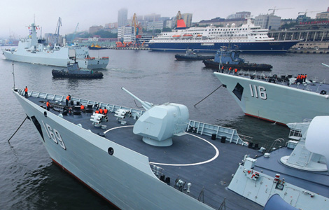 Chinese and Russian naval forces left Vladivostok on Monday and arrived in the Sea of Japan, where they began the live-fire phase of a joint naval drill called "Joint Sea 2013", the largest-ever Sino-Russian exercise of its kind.
