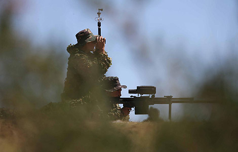 Members of China's People's Liberation Army special forces participate in a comprehensive military contest at a PLA training base in North China's Inner Mongolia autonomous region, July 23, 2013.