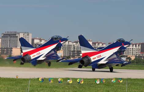 The August 1st Air Demonstration Team, China's first and best-known aerobatic flight display team, will stage its first overseas show in Moscow with J-10 jet fighters, which will fly outside China for the first time.