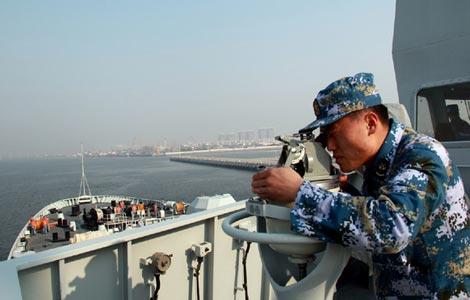 A group of warships from the People's Liberation Army Navy set sail from a port in Hainan province on Monday and started a long-distance patrol training mission.
