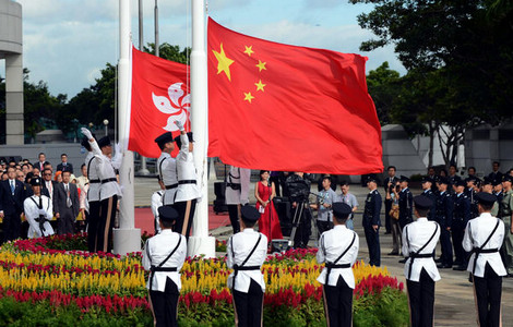 About 3,000 people attended a flag-raising ceremony at Hong Kong's Golden Bauhinia Square Sunday morning to mark the 15th anniversary of the establishment of the Hong Kong Special Administrative Region (HKSAR).