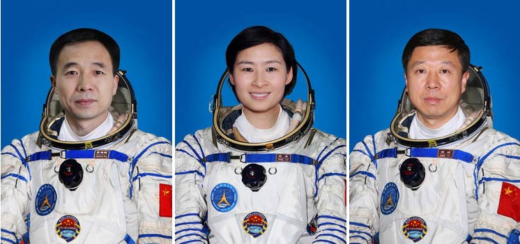China's first female astronaut Liu Yang, together with her two male crew mates Jing Haipeng and Liu Wang, met the media on Friday.