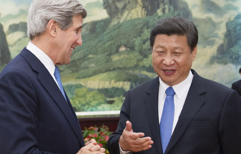 Chinese President Xi Jinping on Saturday met with visiting US Secretary of State John Kerry on bilateral ties and issues of common concern.