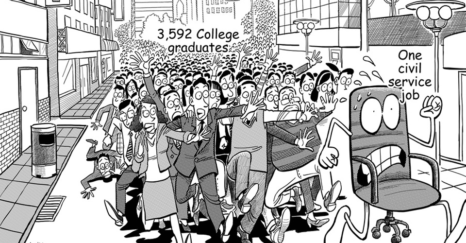 Lots of college graduates are eager to get a job through civil servants examinations, and the hottest post seats 3,592 competitors, 2007.