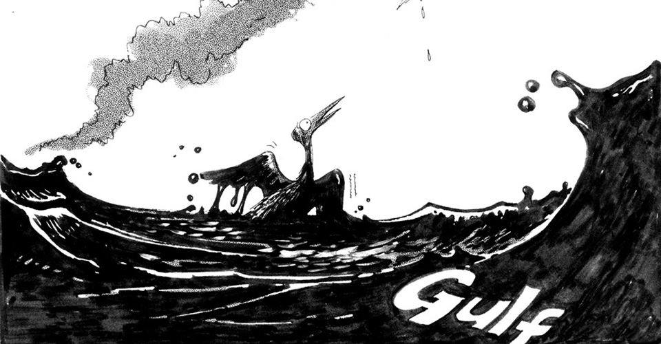 A large amount of crude oil seeps into the Persian Gulf, killing many sea birds, after Iraq blows up oil wells during the war, 1991.