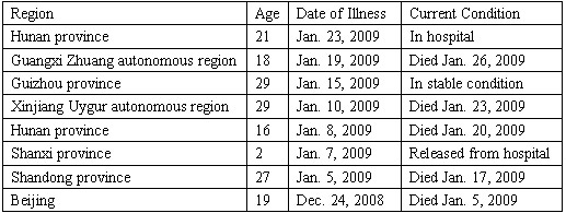A two-year-old baby girl surnamed Peng (L) prepares to leave hospital after recovering from bird flu at the Taiyuan No. 4 Hospital, Feb. 3, 2009.