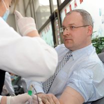 Esthonian Ambassador donates blood for quake victims