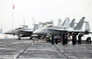 The American aircraft carrier, USS Carl Vinson, sailed into Hong Kong sea waters Sunday morning on a 4-day visit after winning the approval from the Chinese central government.
