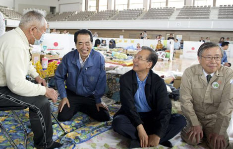 Chinese Premier Wen Jiabao visits disaster-ravaged Fukushima on May 21, 2011.