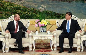 Chinese Vice President Xi Jinping on Monday praised the ties between China and the European Union (EU) as "healthy" and "beneficial" when leaders of political parties gathered in Beijing for a meeting.