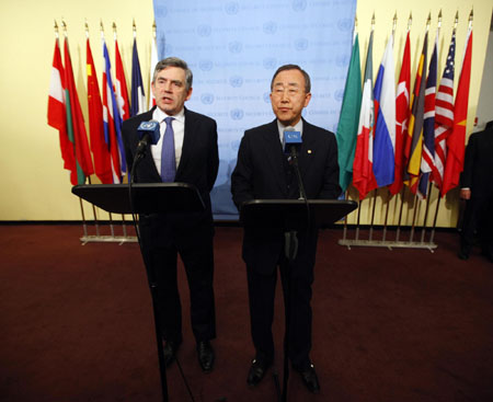 The secretary-general made the statement at a joint press conference with visiting British Prime Minister Gordon Brown following their talks. Brown is the chairman of the London summit, scheduled for April 2 to address the current crisis. In the letter, Ban wrote: "As secretary-general of the United Nations, I write to you today with a strong concern that unless urgent and decisive action is taken to buffer the blows of the global downturn on the most vulnerable, the economic crisis may soon be compounded by an equally severe crisis of global instability." "The first waves of the crisis brought a number of large banks and financial institutions to their knees," Ban said in the letter. "A prolonged and severe recession, if not addressed boldly with urgent attention given to the needs of the vulnerable, could likewise affect countries and regions with profound consequences for the security and stability of us all." "You have recognized that the world needs effective economic policy coordination at the international level, especially in light of the large national stimulus packages currently being put in place," he said, outlining the four areas where the G20 leaders need to show leadership. "First and foremost, we need a truly global stimulus package that meets the needs of developing countries," Ban said. " Financial flows to developing countries have fallen precipitously, and few have the resources to put in place counter-cyclical policies and protect their populations against enormous social setback." The United Nations has estimated that the total financing needed to support developing countries through the crisis is at least 1 trillion U.S. dollars for 2009 and 2010, he said. "While this is a large sum, most of it could be mobilized through existing mechanisms and institutions. In providing this support you will bolster the global economy, help to underpin your own growth, and secure global stability." "A quarter of these resources are urgently needed to protect the most vulnerable people and countries," he said. "Previous crises have shown that social recovery takes much longer than economic recovery." "A further quarter is needed so that all developing countries can borrow long-term for critical investments, including infrastructure for growth and for achievement of the MDGs (the Millennium Development Goals)," he said. "A majority of the world's population lives in emerging economies and other developing countries that have enjoyed access to capital markets but now find themselves under severe pressure," he added. "Second, we must avoid erecting new barriers that could slow economic recovery, and trigger grave social consequences," Ban said. "Rejecting protectionism is not an easy course to follow, but will be essential," he said. "Trade amongst countries provides a powerful stimulus to the global economy." "Third, we must use the opportunity of new, large-scale investments in energy efficiency, clean energy and green jobs -- including through stimulus packages -- to set our economies and our planet on a sustainable path," said the secretary-general. "Fourth, we must adapt our structures and systems to new realities," Ban said. "A genuine solution of the crisis requires a new international financial and economic architecture that reflects the changing realities in the world and gives greater voice to emerging and developing economies." "We will likely face similar shocks and challenges in the future," he said. "It is clear that our early warning systems have been insufficient. The global economy will need better financial surveillance mechanisms to identify threats on the horizon." "I would like to assure you that the United Nations stands ready to support you, by providing a global platform to consider these reforms and the intrinsic linkage between economic recovery, climate change, development, and peace and security," he said. "I look forward to the London meeting as an opportunity to send a new message of hope and determination to citizens of all countries." |