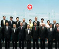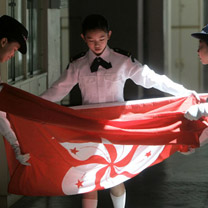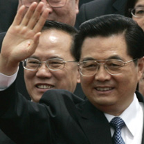 President Hu Jintao plays table tennis with a young Hong Kong player