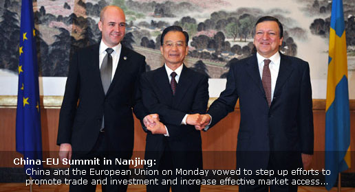 China and the European Union, in a joint statement issued Monday, vowed to step up efforts to promote trade and investment and increase effective market access.Wen: Demands on RMB appreciation unfair Trade probes will not have long-term impact on China' Time not right for stimulus policy exit