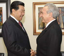 China and Brazil should and will strengthen parliamentary cooperation to further the development of bilateral ties, top Chinese political adviser Jia Qinglin said Wednesday at a meeting with the president of Brazil's Chamber of Deputies, Michel Temer.