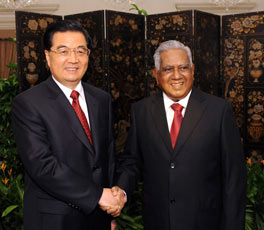 President Hu Jintao met Wednesday with Singaporean President S. R. Nathan, exchanging views on further developing bilateral ties. Pandas Offer to Singapore