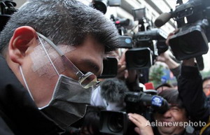Sean Lien, son of Kuomintang (KMT) honorary chairman Lien Chan, pays a return visit to the doctor after surgery on Nov 27. It was Lien’s first public appearance after being shot.