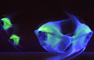 A worker releases two red parrot cichlid fish in a tank in a fish farm in Pingtung, southern Taiwan, September 16, 2010.