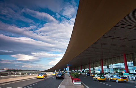 Right: Pedestrians and vehicles go by the Zhonghua Gate on Aug 26, 2015. [Photo/Xinhua]