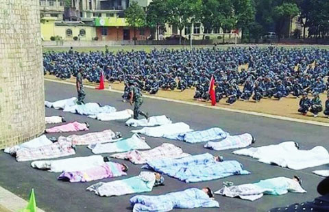 Gao Junwei, an engraving artist aged over 80, shows a stone engraved with tiny Chinese characters on an intangible cultural heritage festival held in Sichuan on Sept 16, 2015. Gao can engrave 155 characters on one-square-centimeter area of a stone. [Photo by Zhang Lang/China News Service] |