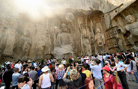 Students take an oath during an adult ceremony in Xi'an, capital of Northwest China's Shaanxi province, May 1, 2016. Over 1,000 students from Qing'an High School dressed up in Han costumes bowed to teachers and parents to declare being grown-ups. [Photo/Xinhua]