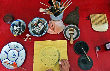 Zhang Qigang, a cultural relic repair technician, makes a rubbing of a piece of relic at Liaoning Provincial Museum in Shenyang, capital of Northeast China's Liaoning province, May 17, 2016.
