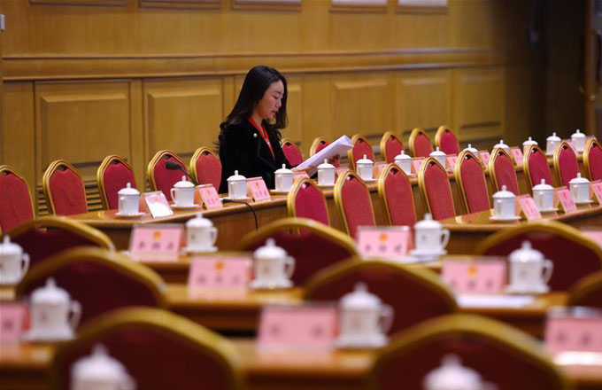 A Yueju Opera performer finishes her hair and makeup before a show. [Photo/VCG] |