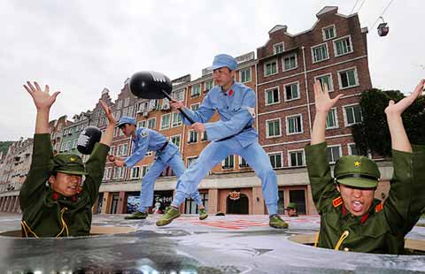 A visitor views the exhibition "Echoes from the Volga River: Masterpieces of the Peredvizhniki from the Tretyakov Gallery" at the National Museum of China in Beijing, capital of China, May 18, 2015. China on Monday held celebrations for the International Museum Day, which falls on May 18. [Photo/Xinhua]