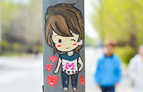 Vivid light pole drawings color campus in name of environment