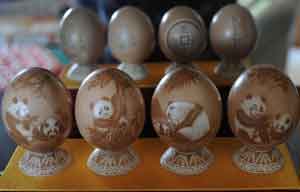 Egg carving handicrafts made by Chinese villager