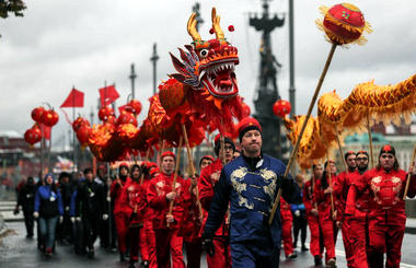 Parade for 2017 World Festival of Youth and Students held in Moscow
