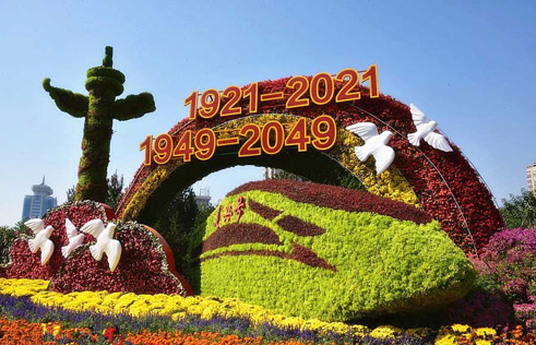 Themed flower terraces celebrate National Day