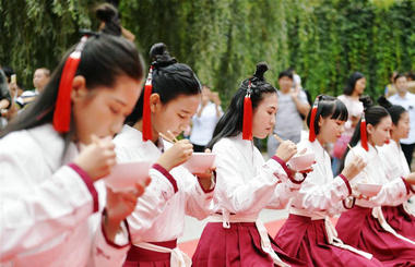 Han dress fans show Chinese traditional coming-of-age ceremony